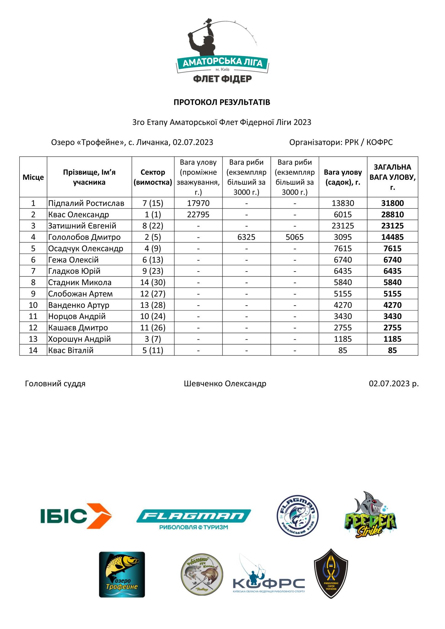 ІІІ Етап Аматорської флет фідерної Ліги. Результати