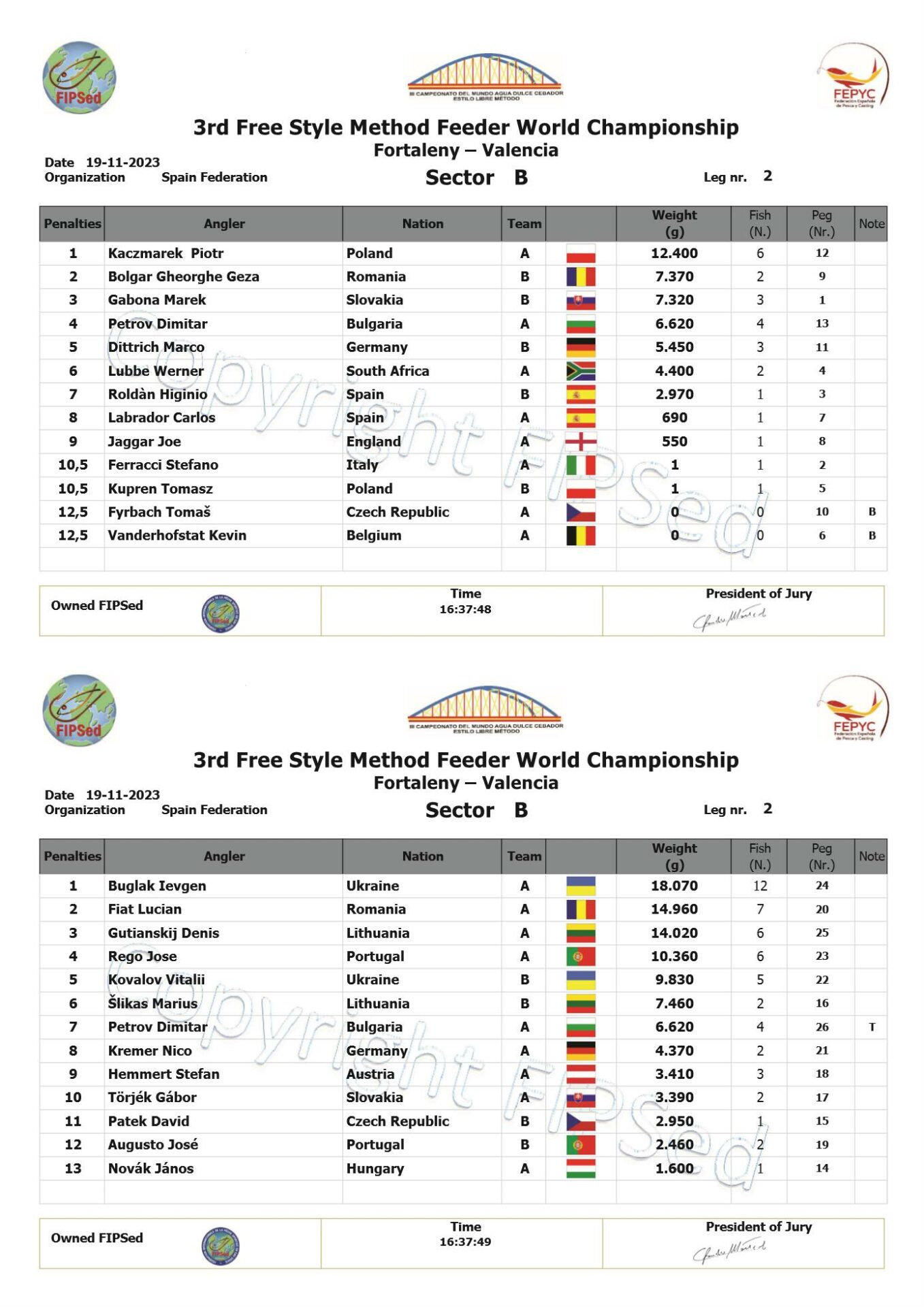 Результати Чемпіонату Світу зі спортивної ловлі риби донною вудкою (FFSM)